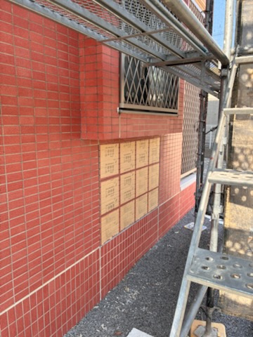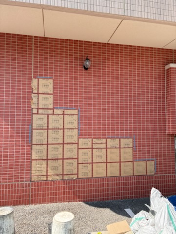 愛知県岡崎市にて、外壁タイル補修工事始まっています。